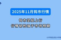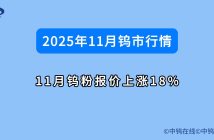 據(jù)中鎢在線了解,2024年11月氧化鋱價(jià)格走勢(shì)先穩(wěn)后降,月末價(jià)格比月初價(jià)格低;均價(jià)5,915元/…