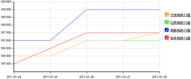 本周國內主要地區(qū)黑鎢精礦日均價格走勢圖如下圖所示: