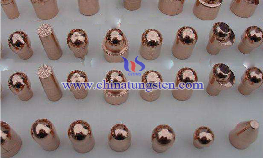 鎢銅作為螺母電極蓋的端面,保證電極具有高硬度,高導(dǎo)電,底部的鉻鋯銅具有高導(dǎo)電性能。整體組合式的鎢銅螺母電極蓋使用壽麵大大高於鉻鋯銅螺母電極蓋。