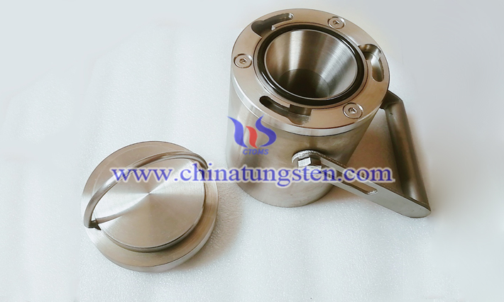 The top of the tungsten alloy container in the picture is locked by means of a fixed joint (bayonet lockup). The lockup is equipped with a O-Ring seal that ensures a perfect tightness. And the radiation shielding container is also equipped with a built-in handle to enable an easy transport.